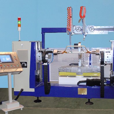 SKDB-120和SKBD200采用全數(shù)字控制。主要適用于中小形定子線圈的絕緣包扎。操作時(shí),只需將漲型后的線圈放置在已調(diào)整好位置的氣動(dòng)夾持器上。纏好絕緣帶,按動(dòng)啟動(dòng)按鈕即可自動(dòng)對(duì)線圈進(jìn)行包帶。包帶完一邊后自動(dòng)翻邊包另一邊。該機(jī)的包帶頭可根據(jù)線圈的大小、形狀、按指令進(jìn)行各種不同角度,不同速度的包帶,包帶的張力的調(diào)整可通過觸摸屏設(shè)定,該機(jī)具有自動(dòng)、手動(dòng)功能,對(duì)于大型線圈還設(shè)有機(jī)械手抓持防震動(dòng)功能,同時(shí)還有多點(diǎn)安全保護(hù)設(shè)置。
